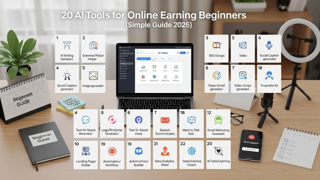 20 AI Tools for Online Earning Beginners (Simple Guide 2026)